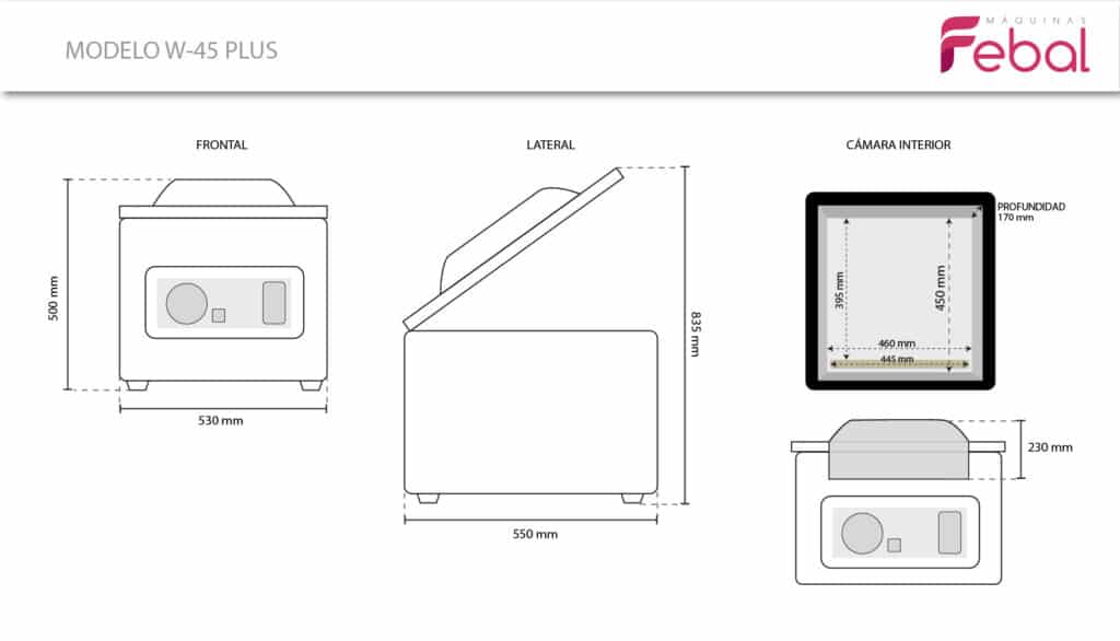 Máquina: 530×570 mm – Altura: 500 mm (935 mm aberta)