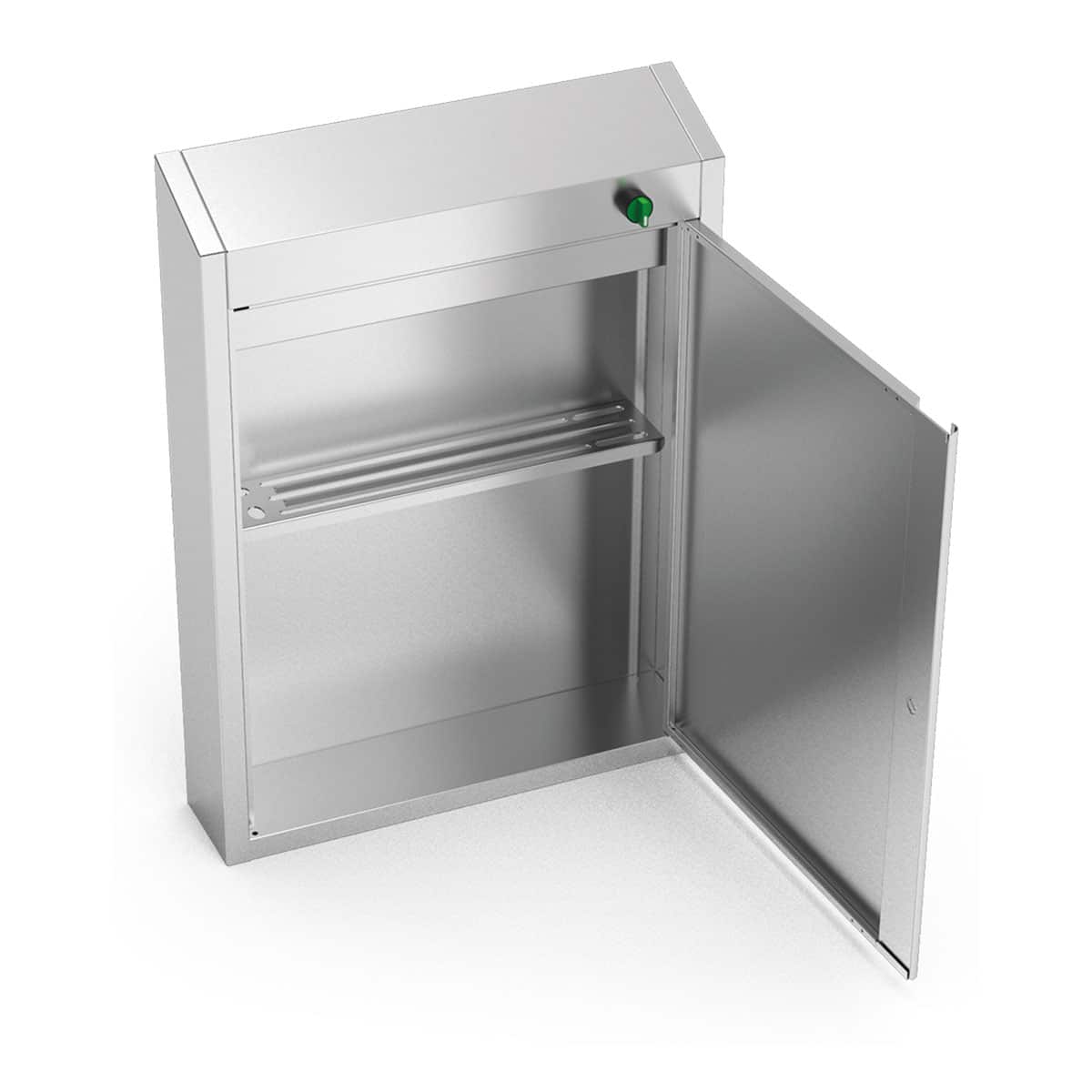 Fabricado em chapa de aço inoxidável com acabamento fosco.