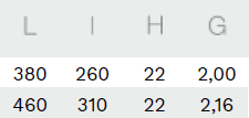 | Medidas | 260 x 22 x 2 mm, 310 x 22 x 2,16 mm |