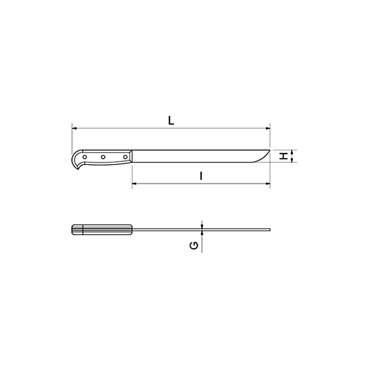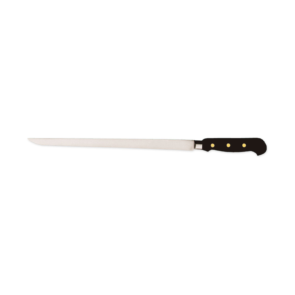 O comprimento, a estreiteza e a flexibilidade da sua lâmina permitem-lhe cortar muito finamente e com grande precisão, enquanto o movimento de corte segue o perfil do presunto.