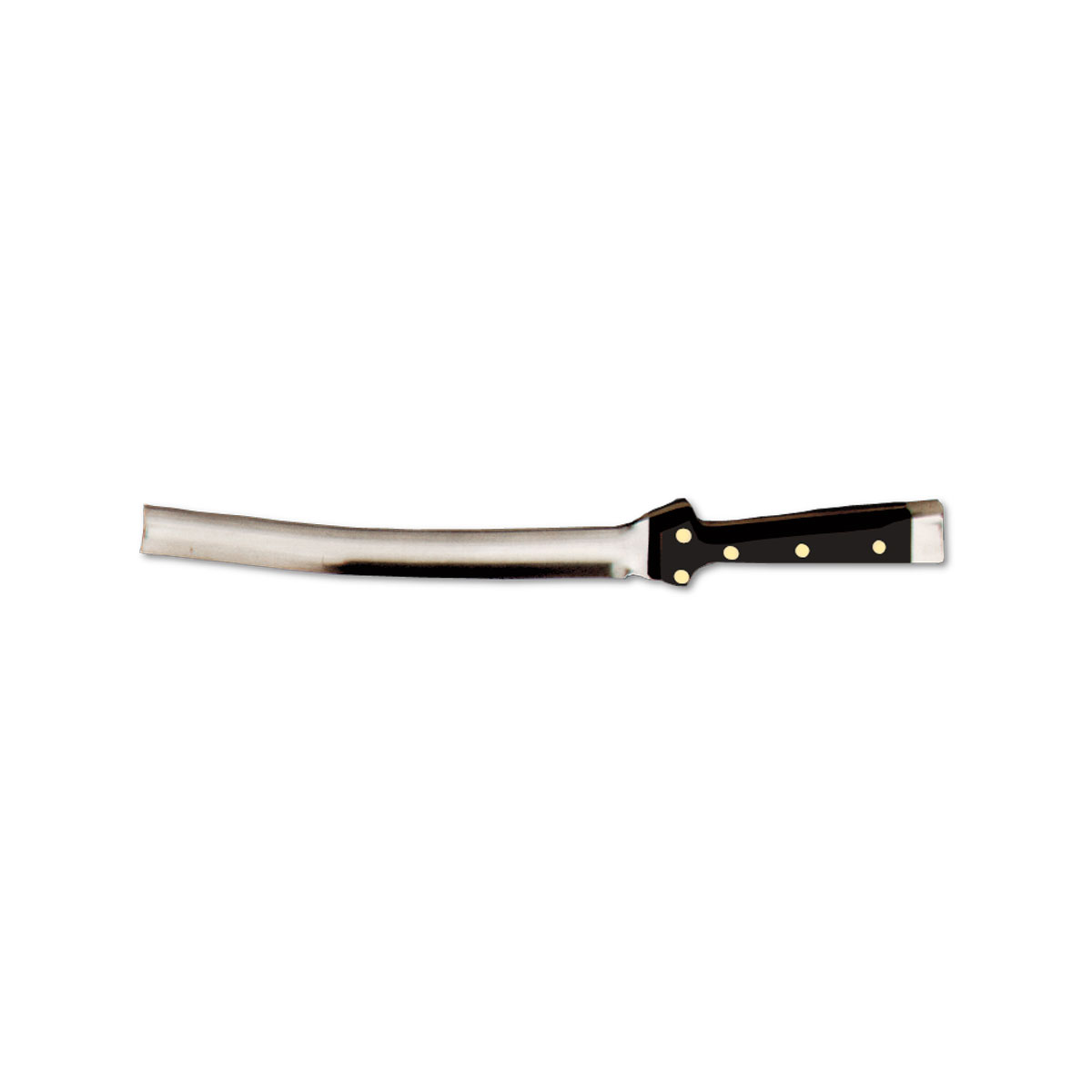 Espátula para desossar presunto com uma lâmina curva, com um gume afiado tanto na ponta como nos lados.
