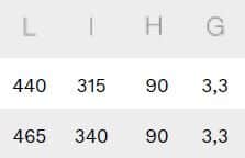 Medidas | 315x90x3,3mm, 340x90x3,3mm |