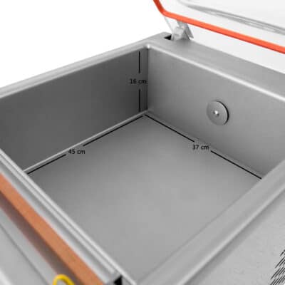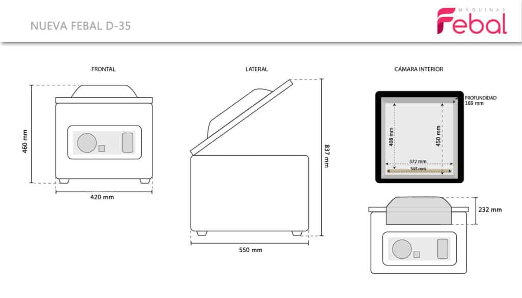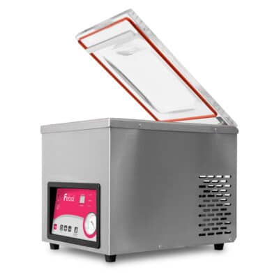 – Temporizador eletrónico para controlo do vácuo e selagem dos sacos.