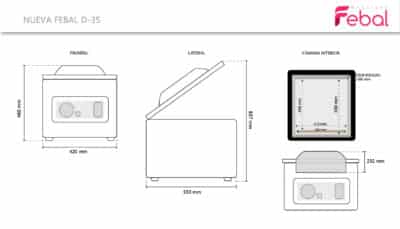 NOVO MODELO D-35. Embala sacos até 33 cm de largura x 50 cm de comprimento. Todos INOX. Digital. Permite o ensacamento a vácuo a partir do exterior da câmara.