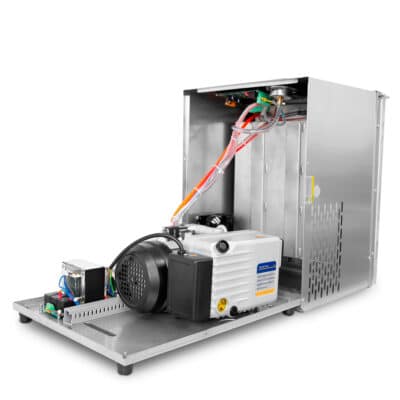 – Painel de controlo digital: sim – Vácuo controlado por tempo – Indicação da fase do ciclo: sim – Depósito em aço inoxidável: sim – Capacidade da bomba: 20 m3/h – Comprimento útil da vareta de soldadura: 350×8 mm – Alimentação: 230v / 50Hz monofásico – Potência: 950 W